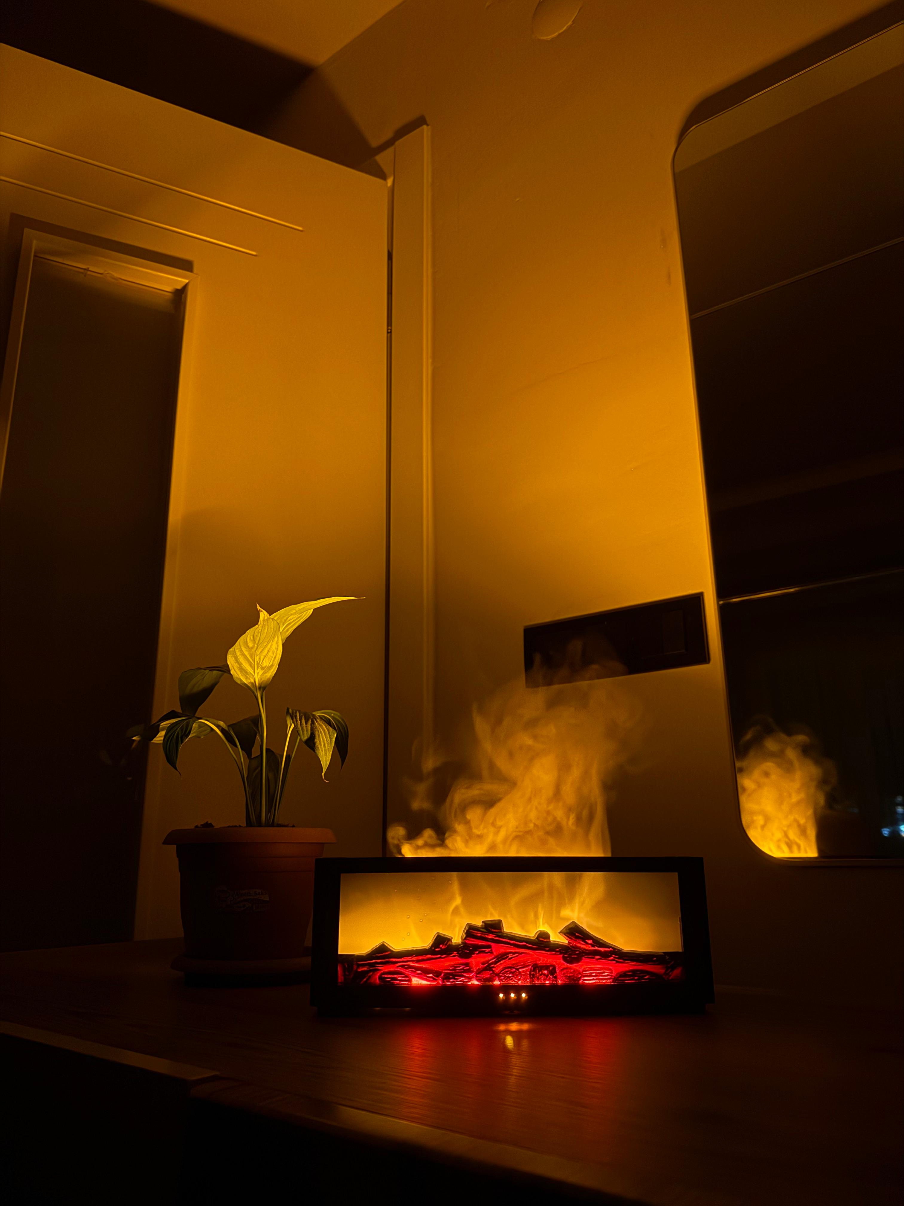 Şömine Sıcaklığı: Yaşam alanınızı elektrikli alev efektli difüzörümüzle bir huzur köşesine dönüştürün. En sevdiğiniz aromatik yağları ekleyin ve büyüleyici atmosferin tadını çıkarın.